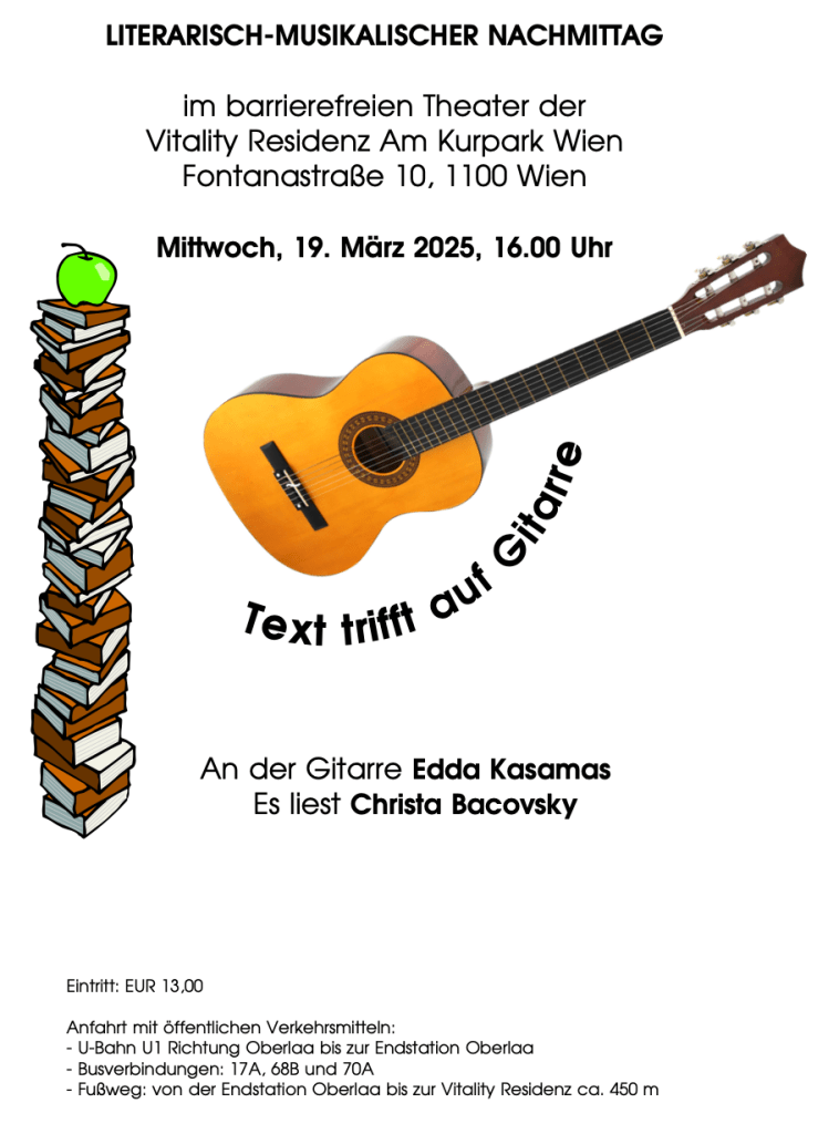 Fontanastraße 10, 1100 Wien wird Edda Kasamas ihre Gitarre erklingen lassen.